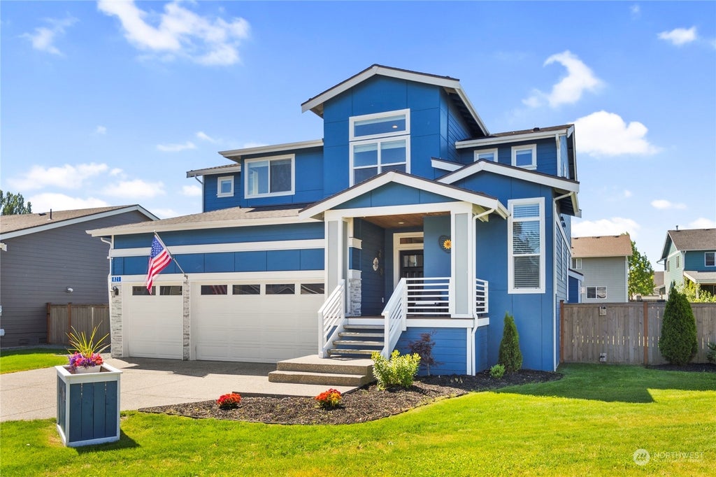 [Assumable 3.75% mortgage rate] Your Suburban Sanctuary Awaits! This luxurious retreat is in a vibrant cul-de-sac community & boasts a perfect blend of style & convenience with an open-concept layout featuring a unique central white cabinet kitchen. New carpets, spacious loft area, private primary suite w/large walk-in closet & new A/C provide comfort & flexibility. The massive 3 car garage w/overhead storage & EV car charger adds convenience. You won't be able to wait to unwind in the dream backyard! Fully fenced, it features +$70K in upgrades, including custom steps with integrated lighting, a paver stone patio with a pergola, a built-in firepit & a custom pool/jacuzzi in one. Close to shopping, sports complex, restaurants, & I-5 access.