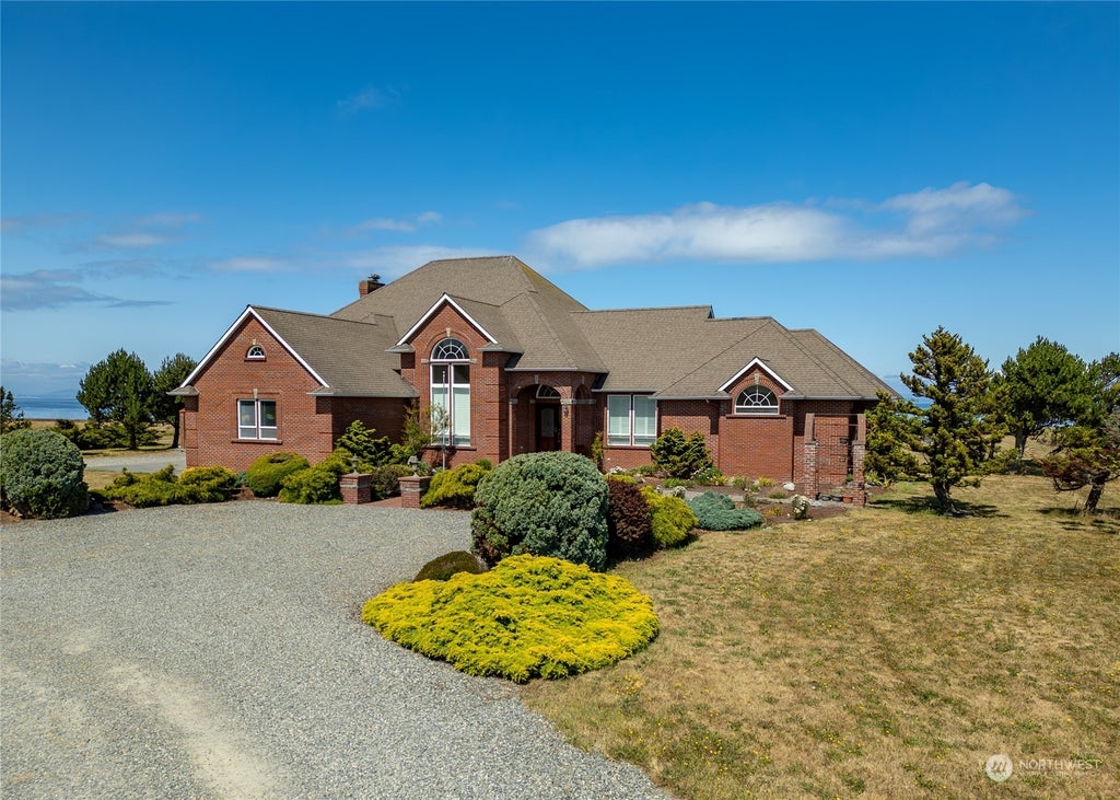 Paradise found views of the Strait of Juan de Fuca, Canada, Olympic Mountain range and private airstrip with access for your plane. Rare 4 large bedrooms, three full & one 1/2 bath home. Large great room/kitchen, formal dining, living room & main bedroom all on the entry level. Upstairs are 3 bedrooms, 2 bathrooms one full & one 3/4. This wonderful home has hardwood floor, tile & WW carpeting. Multiple garages for 3 cars and gardening/toy storage. Brick green house and patio space. One of the nicest homes on the Olympic Peninsula. Large Garage space for 3 cars plus 2 small garages for tools, golf carts etc. Minutes to trails, beaches, & golf courses. Wonderful community airstrip for FLY INS. PILOTS WN29
