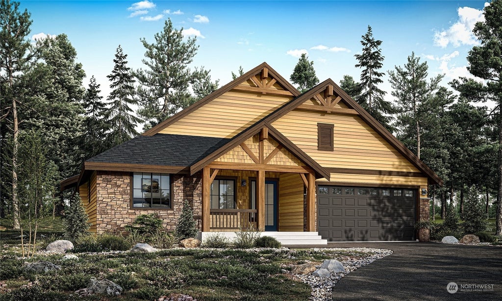 New home under construction by builder Landed Gentry. The Uplands 55+ Active Adult Community located within Suncadia. It is gated with its very own Club House, Swimming Pool, Hot Tub, Pickle Ball Court, and private three-acre woodland meadow. This very popular single level floor plan is a charming 2,489 sq ft home, that lives very large. Included is a Primary ensuite with optional fireplace, 2nd bedroom ensuite, 3rd bedroom, guest bath, and study with 4th bedroom option. The open area of the family room, dining room, and kitchen is great for entertaining guests. Luxury and great taste are found throughout this home.