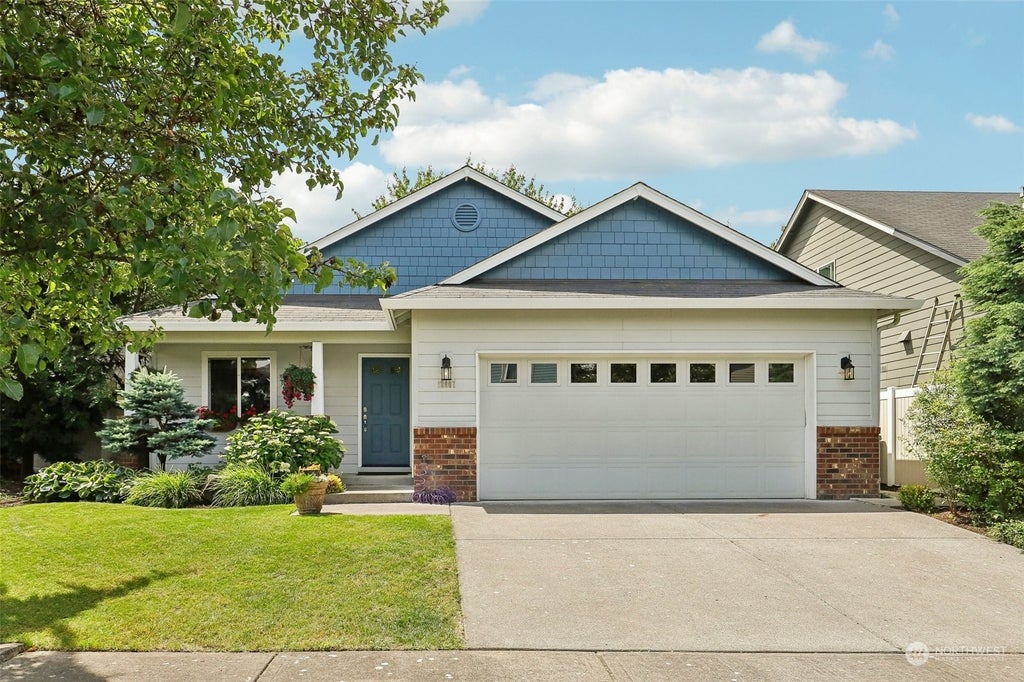 Contemporary Craftsman w/open floor plan & vaulted ceilings situated on a cul-de-sac convenient to schools, parks, shopping & dining. Covered front porch w/garden view.Kitchen overlooks front yard w/white hydrangea & bleeding heart for cut flower arrangements.The kitchen has like-new cabinets w/soft close drawers,SS appliances & pantry.Great room w/vaulted ceilings & gas fp.French door to covered back patio.Primary bedroom w/ensuite & walk-in closet.Two additional bedrooms, laundry room w/cabinets & ample storage;home is well organized. New laminate flooring, fresh interior/exterior paint, new water heater, A/C, kitchen sink, faucet & disposal.Vinyl fencing for low maintenance.Expansive landscaping!No HOA.Single owner home & move-in ready