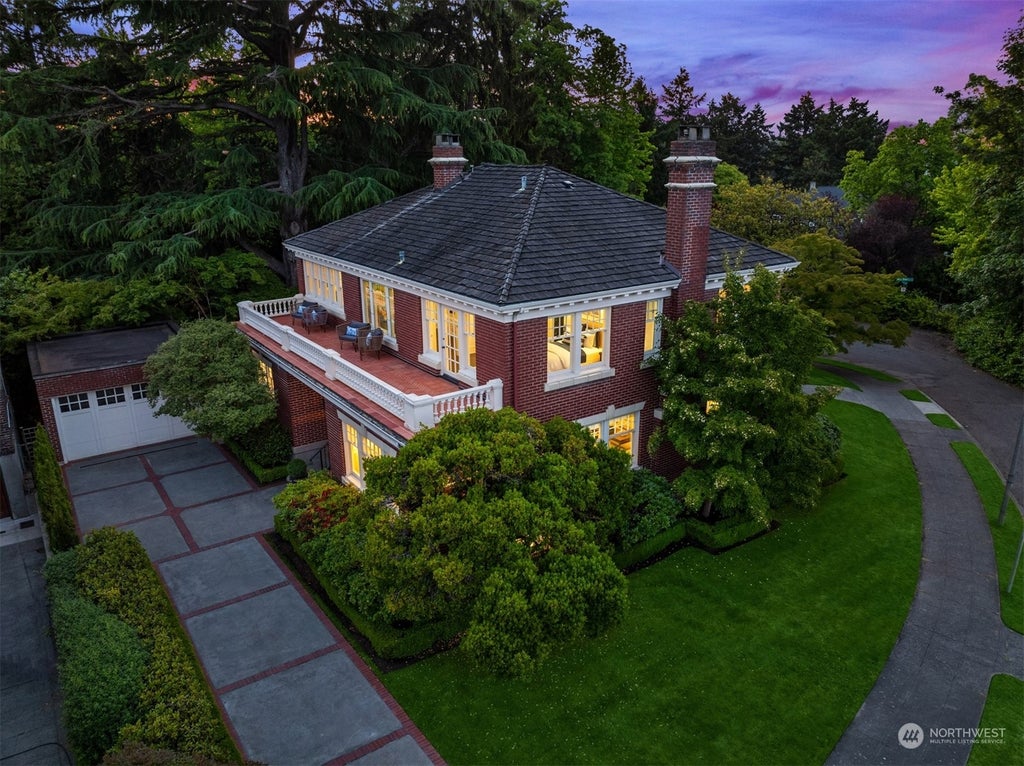 East Coast aesthetics at the entrance to one of Seattle's most desirable streets. This pristine brick Georgian Colonial is ready to move into. Classically handsome and beautifully proportioned; distinguished by its symmetry, balance and significant windows placed to bring in maximum light and view. An impressive sun terrace spans the width of the second floor facade and is surrounded by a significant period balustrade. A covered front porch welcomes you inside where the beloved center hall floor plan showcases substantial day rooms, timeless moulding and dark stained hardwood floors. A perfectly intact stained glass window at the top of the stairway beckons you upstairs. Fresh white interiors, stylish grass shades. New water heater.