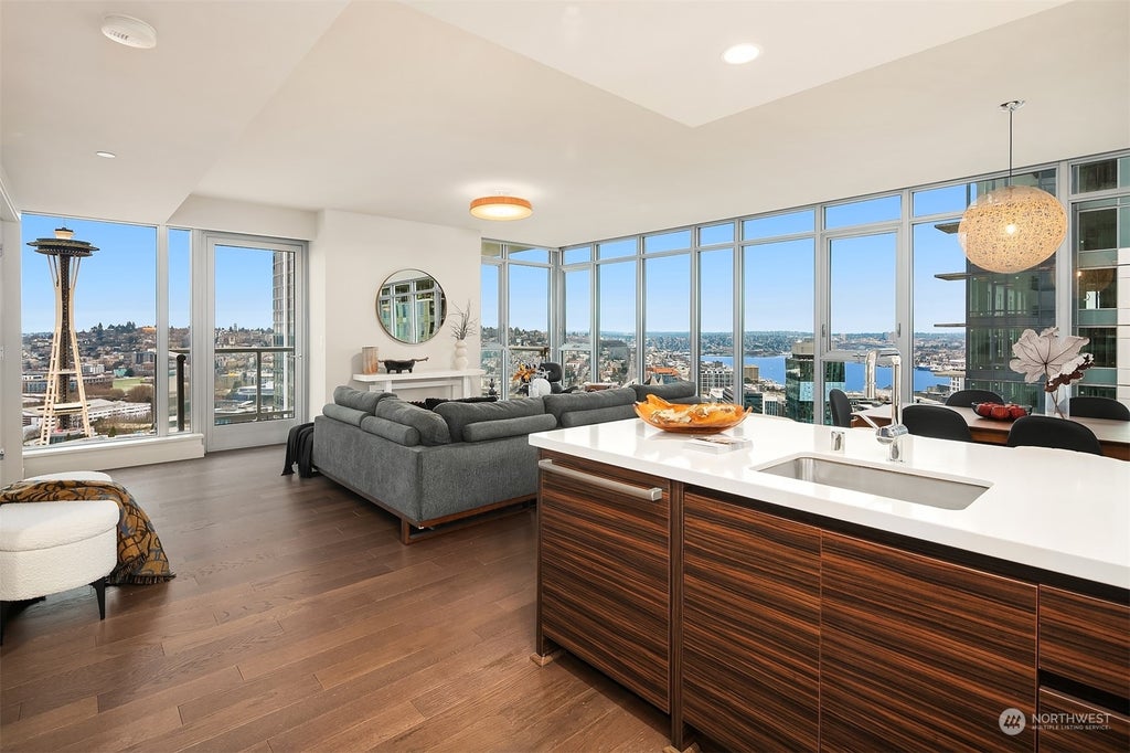 It’s been almost 3 years since a NE corner 2-bedroom + den has been listed at Insignia’s north tower. Floor-to-ceiling walls of glass flood the interior with light & jaw-dropping iconic Sound, Space Needle, lake, mountain & city views. Open sprawling floor-plan with big view deck is ideal for entertaining. Working from home has never been easier in the flexible den that easily converts to a guest room for visitors. Both bedrooms offer stunning Sound & Space Needle views. 2 parking spots (one is EV charging) & storage. Coveted building amenities: 24-hr concierge, resident park, 2-level gym with yoga & Pilates studios, indoor swimming pool, hot tub, steam room, sauna, pet retreat & grooming spa, movie theater & multiple roof-top sky lounges.