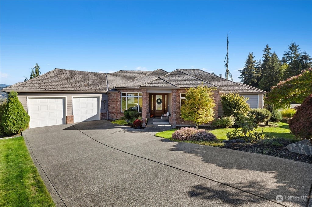 LOW VA assumable loan! Custom daylight rambler in the coveted Estates at Crystal Ridge w/breathtaking views on a large dead end cul de sac lot. 4 bed/3 bath home has a great floorplan, featuring the primary suite w/remodeled bath on the main, plus guest bedroom and full bath, a light & bright den and dining room, a fantastic open kitchen off the living room w/access to a wonderful private deck space w/stellar views of Mt Rainier. Downstairs you'll find a large family room, 2 generous bedrooms, a 3/4 bath & a flex/storage/workout space w/garage door for easy access to the backyard. Great location, close to freeways, shopping & schools. Homes like this don't come on the market often & rarely in this neighborhood. NEW furnace/AC unit!