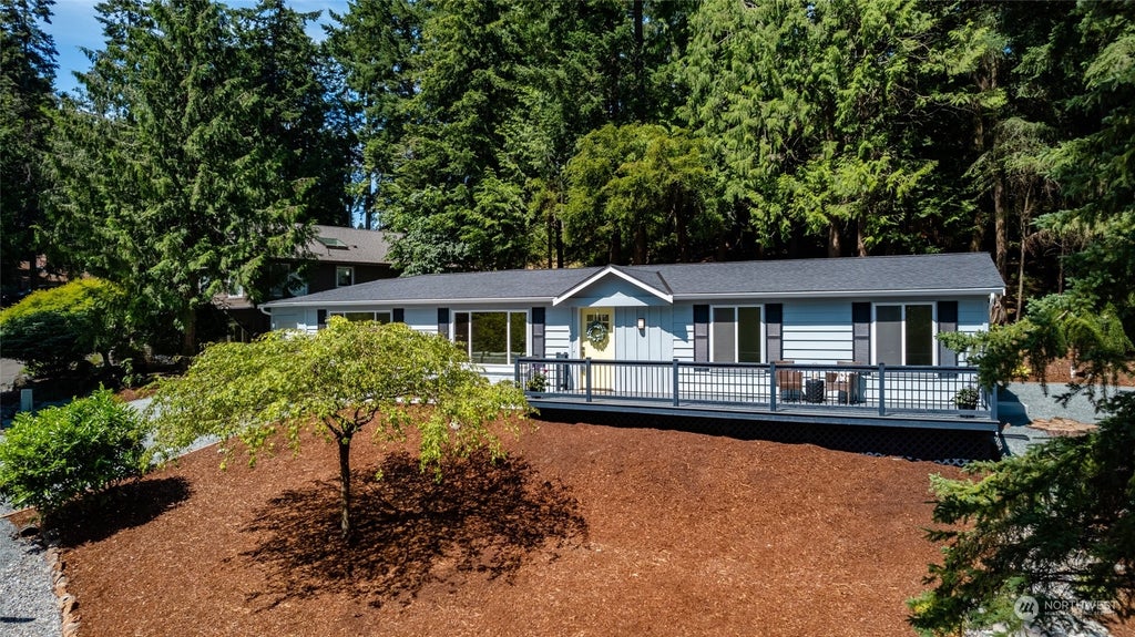 Fantastic single-level 3 bed/1.75 bath home in Shelter Bay, right across the Channel from picturesque La Conner where cute shops & great dining line the street. Like walking into new construction, this home has been completely remodeled from top (brand new roof) to bottom (new luxury vinyl plank flooring), and everywhere in between. Stylish modern kitchen w/beautiful quartz counters, brand new stainless appliances, 2 pantries. Primary suite w/brand new 3/4 bath. Two guest bedrooms, brand new full bath. Attached garage, low maintenance landscape, huge new composite deck. Shelter Bay amenities include clubhouse, par 3 golf course, pickleball courts, private beaches, and more. Don't miss this better-than-new home on a large corner lot.