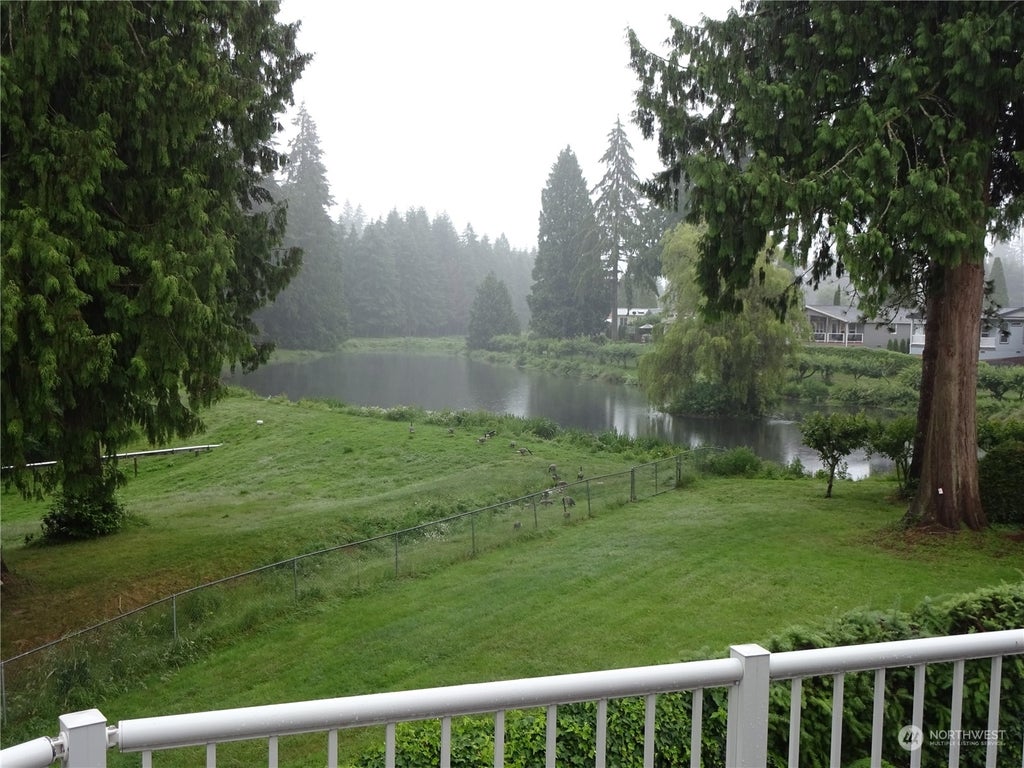 Motivated seller. Tranquil Lake View from this beautifully maintained home in the desirable Green Acres Park, a 55+ community in Bothell. Home is open, light & spacious w/1458 sq ft,vaulted ceilings, skylights, 2 bedrooms, den/office,walk in shower in the primary bath, walk-in closet, Large kitchen w/eating bar & walk-in pantry. Heat pump is efficent for Heat & AC. Carport, nicely landscaped, expansive composite deck, access to a huge 4ft high clearance area for dry storage under the full length of home. Large storage shed w/ upright freezer and shelves. Additional Rubbermaid outdoor shed for more . Park offers walking trails, dog run, RV storgage, clubhouse w/ scheduled activities, minutes to Canyon Park shopping, 405 and I-5 corridors.