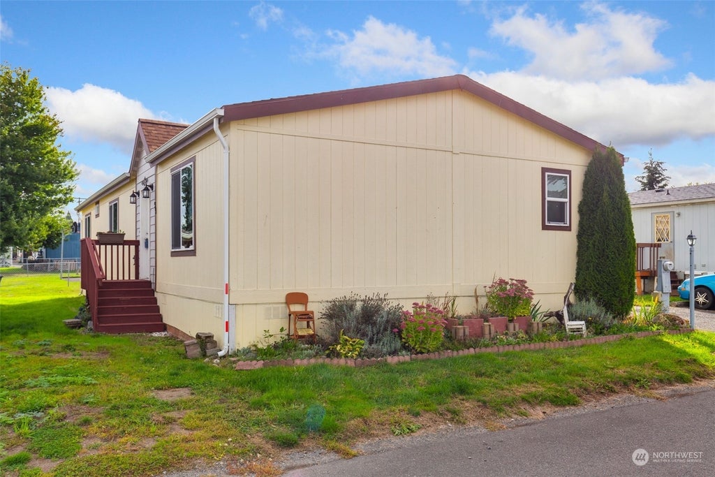 Welcome Home to Meadowbrook ALL ages mobile home park in the heart of Buckley! This is a well cared for community with a playground, picnic area and RV parking! This light and bright home has 3 spacious bedrooms, two full bathrooms and a utility room with washer and dryer. The spacious floor plan is great for entertaining and the large Primary Bedroom features a private bath and large walk in closet. This lovely home has a kitchen island, eating area that includes a bar, a large open living room, two entrances, new carpet and has been freshly painted inside and out! Close to shopping, schools, restaurants and more!
