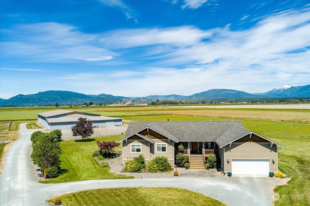 Captivating 37-acre Skagit Flats farmland...96'x168' barn with a 72'x144' indoor arena, 8 stalls, plus hay & shaving storage, office areas, 3/4 bath, & laundry w/additional 1/2 bath. 9 outdoor fenced paddocks w/ 7 shelters. One level 3 bdrm, 2.5 bath, 1977 sq ft, den, great rm w/gas frpl, high ceilings, built-in bookcases, primary bth w/separate shower/jetted tub, dbl vanity, spacious kitchen, laundry area & 2 car garage. Overhead storage in the garage.