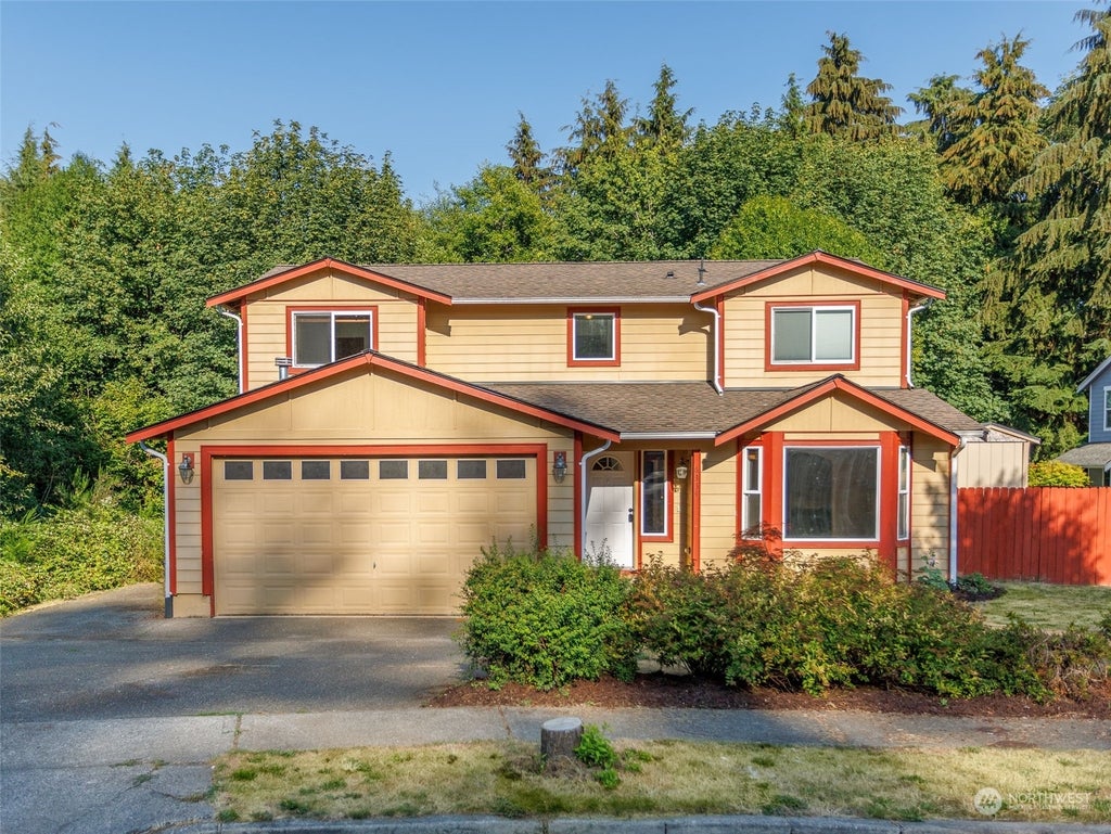 Beautiful Tumwater home in a secluded cul-de-sac within well-maintained neighborhood. This bright, natural-light-filled home features a large bay window, open living and dining areas, utility rm, and 1/2 bath on main floor. Kitchen has granite countertops, newer appliances, and an in-home vacuum system. All 4 bedrooms are upstairs, including large primary w/ ensuite. The backyard offers a spacious deck with gazebo, serene greenbelt views beyond fence line, plus shed and hot/cold water faucet on side of home. Conveniently located near shopping, schools, and I-5. BRAND NEW HVAC/CENTRAL AIR/HEAT PUMP W/ UV LIGHT! (2024) NEW ROOF (July 2022).