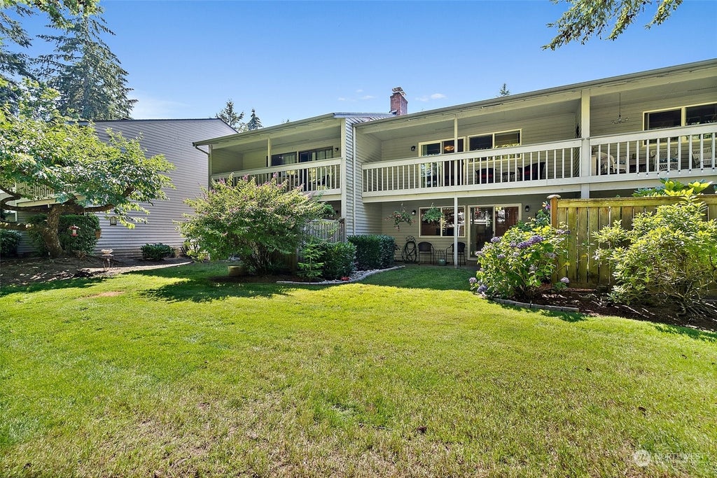 Welcome Home to Bridgeport Park Estates, a Wonderful Condominium Community in University Place. This fantastic condo features an open and spacious floor plan, zero access entry stairs, light and bright living room with fireplace that is open to the nicely updated kitchen with pass through and eating area, Bellawood hardwood flooring on lower level, lovely primary bedroom, 2 total bedrooms, one 3/4 bath and one 1/2 bath. You will love the lower and upper lever balcony/patio areas off of each bedroom and the living spaces. 1 car attached garage, conveniently located to all amenities, UP Schools and more!