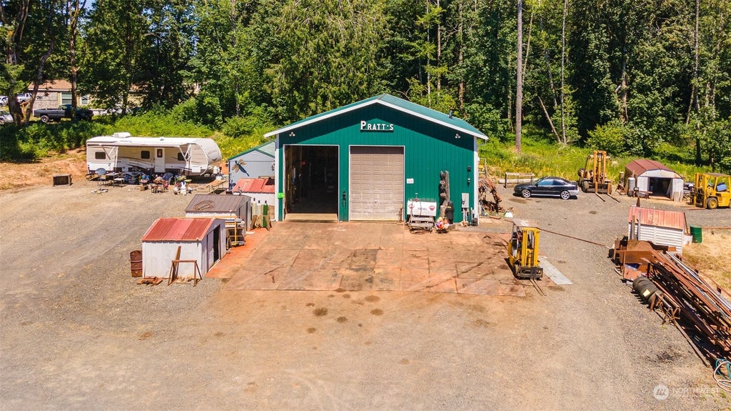Check out this Build-Ready 5 Acre property with Drilled Well, 200 AMP power on property & centrally located between Seattle & Portland w/easy I-5 access. Large Shop is 36' W X 40' L, has 16' eaves, 2 Bays w/14' H X 10' W doors. Shop has office area, loft, oil burning stove, 220V and is fully set up as successful Welding & Fabrication business. Property also features 20X10 insulated shed w/power & lights, shower stall, on-demand water heater & propane tank stays. Master Site Plan for driveway, shop, Manufactured home site & Septic was approved in July 2019 but permits have expired. Manufactured home site is prepped & ready. Seller is motivated. Bring your ideas & plans.