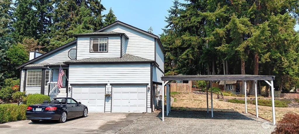 This charming single-family home in Bonny Lake, WA was built in 1989 and offers 1900 sq.ft. of finished living space across two stories. Property features 2 full bathrooms, 1 half bathroom, and a spacious lot size of 1/3 acre. Perfect for a growing family or those who love to entertain, home provides above ground pool ample space both indoors and outdoors. Recent upgrades, New roof, new counter tops, back splash, tank less water heater, new flooring through out, bathrooms updated. Great location, great School District. !OH YEA family room comes with 110 inch lazer tv built in surround sound and can be changed back to garage easily. Brand new 2 car covered carport and covered entrance added in September.