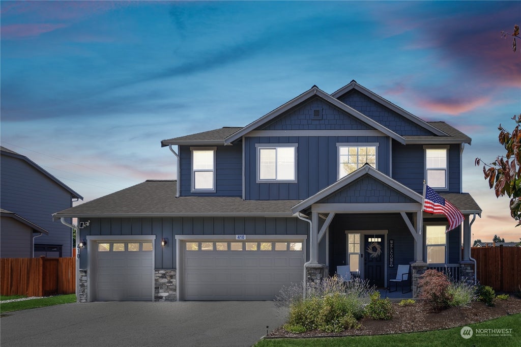 Still time to enjoy the holidays here! 4-bedroom 2.5-bathroom + Office + Bonus, A/C cooled home located in Cambridge Commons boasting a spacious layout. Luxury Vinyl Plank(LVP) flooring throughout the main floor. The covered porch welcomes you into the open-concept living space. The great room is perfect for entertaining guests or relaxing. Primary bedroom features a 5-piece en-suite & a walk-in organizer closet. 3 additional bedrooms, full bath & large bonus room provide ample space for everyone. Over-sized, fenced backyard with cozy firepit for enjoying the PNW! 3-car garage provides plenty of space for vehicles/storage. Community includes fenced dog park, neighborhood park, playground, covered picnic area & Frisbee Golf.