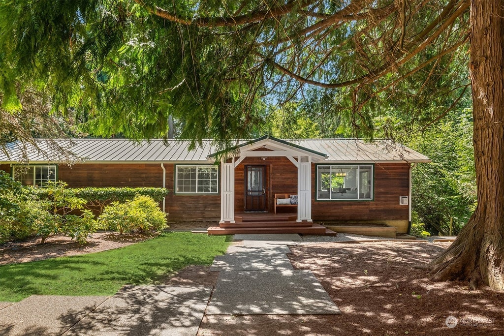 A truly relaxing retreat, set on a 2.45 acre private lot, yet just a block away from award winning Blakely Elementary School. Many special features on this large sunny lot- a detached home office, large fenced garden area with raised beds, paths leading to the sunny lawn area with play structure, large barn/workshop, small barn for tool storage, patios, decks with hot tub, and paths leading down to the fire pit area. Mature landscaping provides privacy and sun. Open floor plan on the main floor with kitchen, living room and dining area. Main floor primary suite. Large bonus room on the lower level is set up for play and fun! Access from the lower level to the patio, deck and trails. Metal roof and newer stainless kitchen appliances.