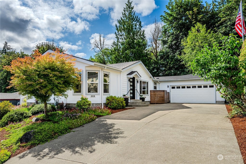 Immaculate home with fabulous, modern updates throughout in desirable 55+ Klahowya! Large windows, skylights & vaulted ceilings give a bright, open feel & zoned ductless HP system provides heat & cooling in season. Stunning new Kitchen boasts quartz counters, slate appliances, gas range w/hood, white farm sink & coffee bar- all open to spacious Dining & Family Room. Abundant custom cabinetry featuring 29 lighted, soft close drawers & cabinets keeps Kitchen beautifully organized. Dreamy Primary Suite w/walk-in closet & luxurious 5 pc bath! Lg Guest Rm & 3rd BR/Off w/built-in shelves. 2nd bath w/ADA shower. Sun/Flex Rm w/peaceful views of pretty, low maintenance yard, Trex deck, patio & greenbelt! XL 2-car Gar w/blt-in shelves! IT'S AMAZING!