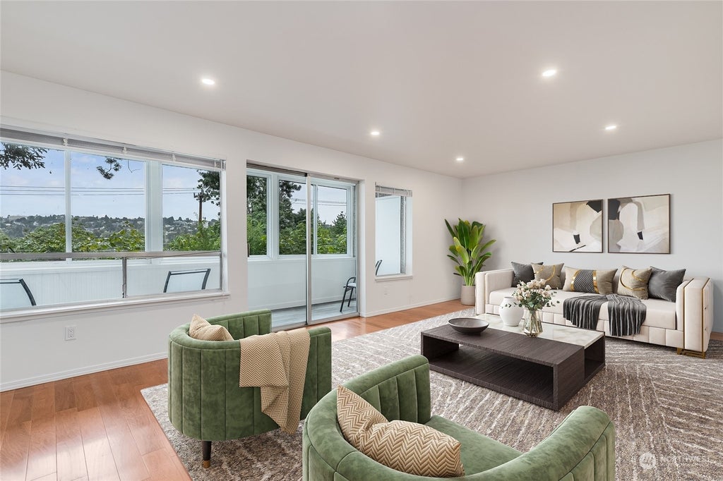 Views of the canal & minutes from SPU, Lake Union & DT make this updated end-unit one of the best 2 bedroom values in Queen Anne! This spacious unit features level secure entry, hickory floors, a brand new updated kitchen w/ stainless Samsung appliances, quartz counters, white shaker cabinets and designer stainless sink. Also updated full bath with new vinyl planked floor, designer tile surround in shower, new vanity & toilet. Other updates include all new lighting, interior paint and a refreshed enlosed balcony /flex room with storage closet, new flooring, bead board half walls and shiplap ceiling. Energy efficient windows, new hardware & stackable LG W&D. No rental cap, plenty of guest parking, strong HOA and no current assessments.