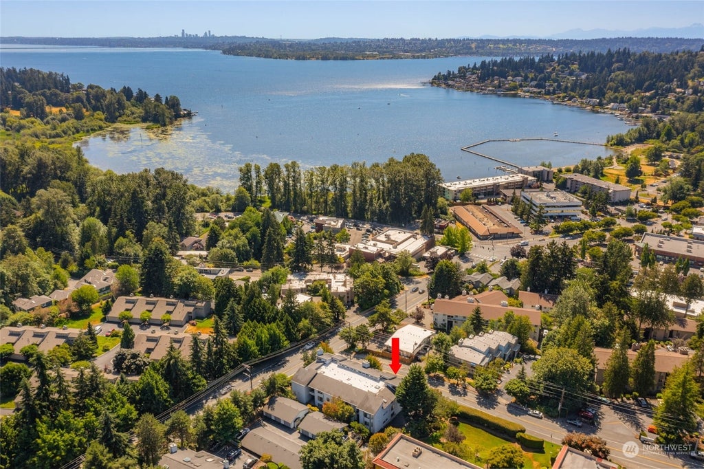 NEW PRICE! Wonderful boutique condo just minutes to Juanita Beach & Juanita Village. 2 bdrms 2 baths with your own private garage parking. New plank flooring, carpet, and recently updated bathrooms, one with a spacious soaking tub. Huge primary includes a wall of closets and built-in organizers. Spacious kitchen with large pantry, room for office area, and dining space; includes greenhouse window, stainless appliances, and ready for your custom updates. Oversized living room features wood-burning fireplace, wet bar & slider to back patio and storage closet. Wonderful western exposure allows in lots of light. Bonus direct access to slider with no stairs, a great spot to bring in groceries etc Laundry room with full size W/D & extra storage.