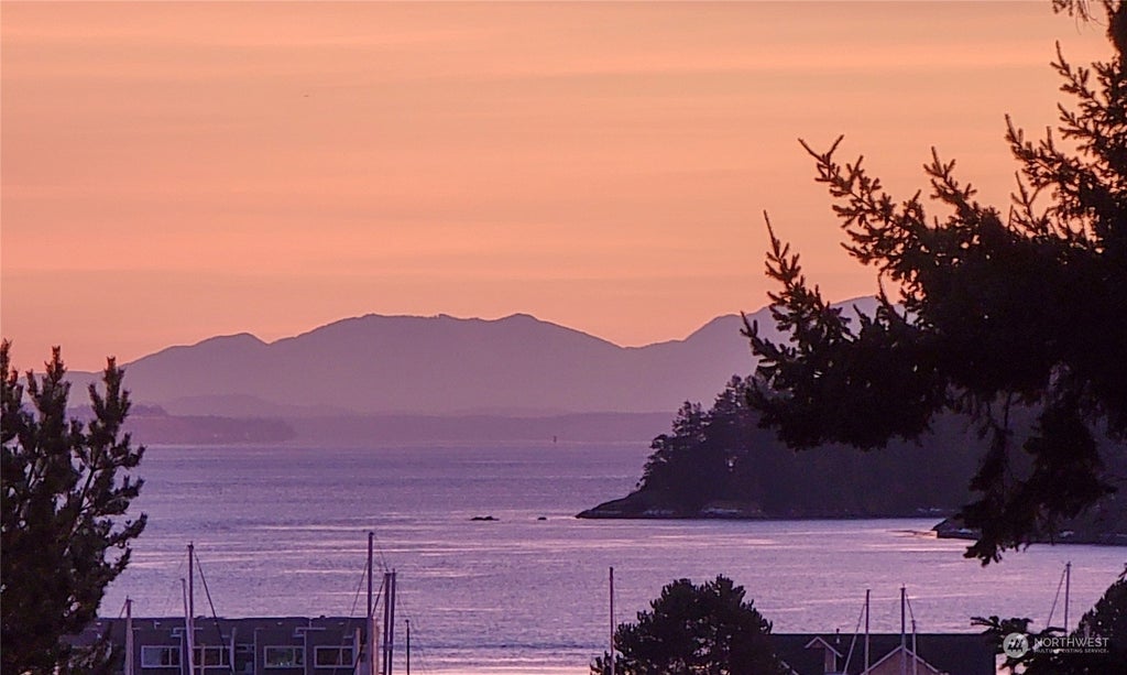 This custom home with beautiful architecture has great privacy, while still capturing distant views of Port Townsend and the Olympic Mountains framed by madrona and fir trees. This quality built home is elevated above the norm with its quality materials including cedar siding, solid core doors, expose glue lam beams and expansive eaves. Beyond the South wall of windows is a deck that wraps around to an extremely private back deck area with hot tub and outdoor shower. The 26’ deep garage has a 9 foot tall garage door that will accommodate a sprinter Van. There is a small carport behind the main level. A 34’moorage slip is available in the Marina 3 minutes away. Skyline amenities are included.