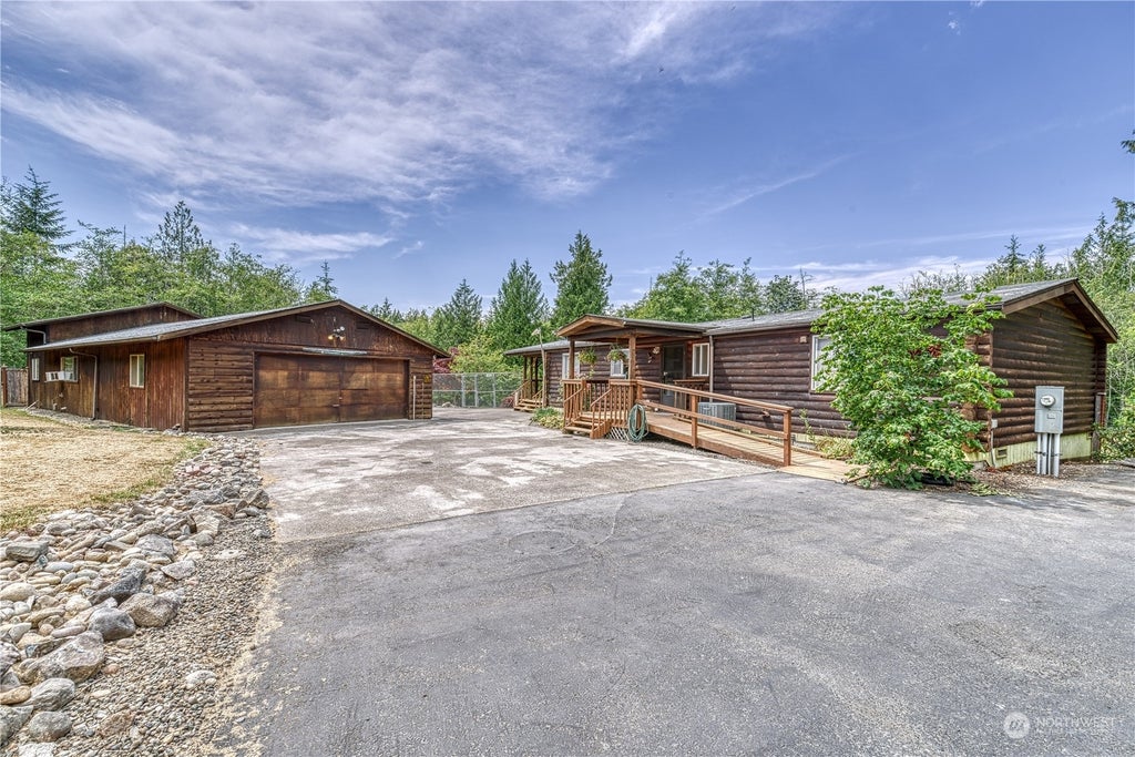 Discover your perfect retreat on Harstine Island! This charming manufactured home, adorned with beautiful log siding, is nestled on 5 serene acres. Featuring 3 bedrooms and 1.75 bathrooms, this home offers a cozy, modern living experience with an updated kitchen ready for your culinary adventures. Just 3 miles from the bridge and close to Jarrell Cove State Park, you'll enjoy easy access to mainland conveniences and outdoor activities. The property boasts 3 separate fenced areas for animals and a spacious garage/shop with extra tall RV parking. Embrace tranquility and beauty in this delightful home!