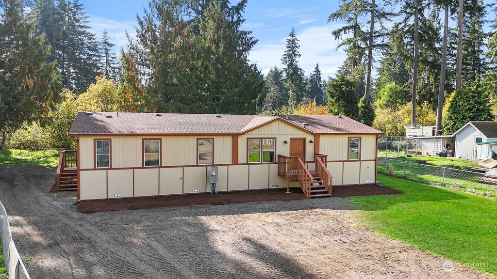 Home, Sweet Home! Marvelous move-in ready 3bdrm boasts brand new flooring (& trim) & freshly painted interior/exterior. All it needs is you! Spread out in this 1,512 sqft split bdrm floor pln w/vaulted ceilings gracing the open concept living space. French doors open into office/study. Wood wainscoting wraps the Dining rm adjacent to Kitchen w/separate breakfast nook. All appliances stay! Relax in the soaking tub in private Primary bth w/walk-in shower. Don't forget the brand new furnace & ceiling fans. Step out the slider to covered patio in fully fenced yard awaiting your 4-legged friends. Property backs up to green belt so no immediate neighbors behind! Enjoy Nisqually Pines amenities including swimming pool, playgrounds, & river access.