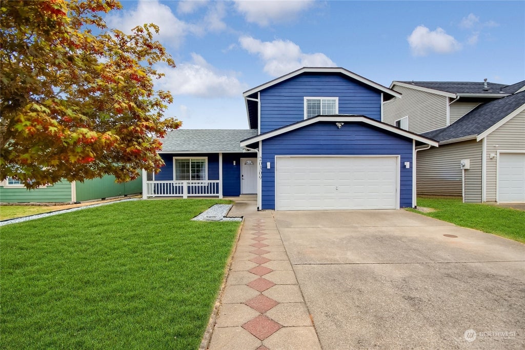 Gorgeous fully updated & move in ready home w/ modern look. Open concept floor plan, skylights & vaulted ceilings. Recently remodeled w/ new roof, cabinets, trim, doors, carpet, exterior & interior paint. Newer furnace, hot water tank & gar door opener. Open gourmet chef kitchen w/ center island, cook top stove, hood, granite counters, SS apps, trendy backsplash & barn sink. Built in vacuum, can lighting & ceiling fans. Dining rm w/ tons of natural light. Primary br w/ ensuite & walk-in closet. Fully fenced backyard w/ deck & shed. The Hidden Village neighborhood is a perfect place to call home and is also close to restaurants, grocery stores, JBLM and more. Go see it today!