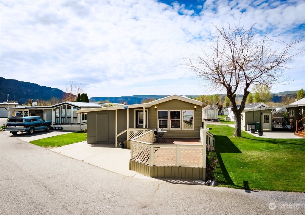 Sought after Crescent Bar North Park view property on quiet dead end street with view of the majestic basalt cliffs, just steps from the commnity pool with bathhouse and showers (for guest overflow!). 901 ft, fully furnished 2 bedroom, 1 bath, with open dining/kitchen area and living area with knotted pine accent walls. Sq footage includes outdoor Arizona kitchen/bar with new hot water tank. Home boasts ceiling fans, skylight, double paned windows, new roof, laundry in shed, and large deck for outdoor entertaining. Crescent Bar Resort community features year around recreation with boat marina with 2 boat launches, golf course, 2 restaurants and a new Beamont Cellars wine tasting bar with a music venue, river walking trail and much more!