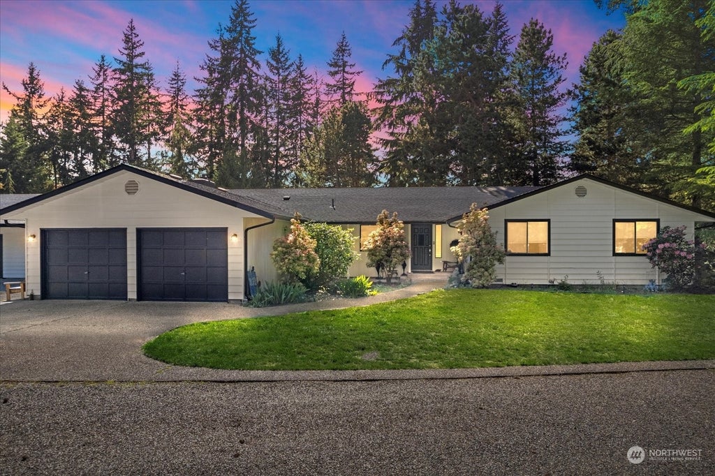 Discover a mechanic's paradise on over 4 acres with stunning lakefront views! This 3-bed, 2.75-bath rambler boasts a gated entry and an expansive garage with multiple bays, perfect for all your projects and toys. Enjoy the convenience of a spacious dining room and kitchen, ideal for entertaining. The multi-level deck with built-in seating offers serene lake views. The primary suite features a walk-in closet and full bath, while oversized bedrooms provide versatility. The shop includes a car lift and loft, plus a 2-car garage with a separate office. Ample RV parking, garden space, and fruit trees complete this secluded haven, frequented by wildlife.
