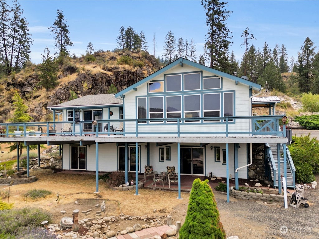 Great Views of the Spokane Arm on this 5 acre parcel that features a 2 bed 2 bath home with a large deck and a separate entrance that goes to the basement with another 2 bed one bath living quarters. New siding and the roof is less than 5 years old. 24x36 ft shop. Woodshed with a carport attached. 1500 gallon cistern. Extra wood and propane stove. New water heater. Updated kitchen. 2832 Sq. Ft. Addition outbuildings. Located minutes from the Fort Spokane Boat Launch. Motivated seller.