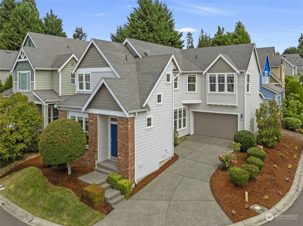 High-quality, Camwest craftsman home perfectly situated in this small, secluded Sweetbriar community. Desirable floor plan with impressive 2-story entry, main floor high ceilings, oak hardwood flooring from entry thru living/dining rooms & kitchen. Detailed woodwork and plentiful windows. Spacious kitchen with abundant cabinets, granite counters, center island & breakfast nook, all open to the Family room w/built-in entertainment center. Primary bedroom w/5-piece bath & 2 closets (1 walk-in), plus 3 additional bedrooms up. Library-style, upper hallway cabinetry. Sunny, corner lot with SW exposure, across from the community park. A/C for comfort. EV charger. Elementary & Middle schools 2 blocks away. Great access to buses, I405 & Microsoft!