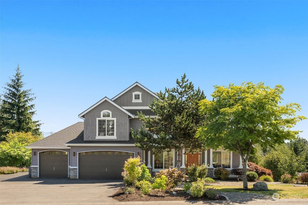 Welcome to this stunning property in the Meadow Ridge community, offering captivating mountain and territorial views on a serene 2.3-acre lot. The main and upper floors are bathed in natural light, with 180-degree views from the kitchen, dining, and living rooms, as well as the primary bed and bathroom. Recent upgrades include a new roof, HVAC/AC, hot water tank, engineered wide plank hardwoods, plush carpets, quartz countertops, new kitchen appliances, and a renovated powder room. The large basement bonus room features a half bath and a spacious full-height unfinished storage area. Enjoy the new outdoor living area with a fireplace and bistro lights, nestled in a quiet neighborhood community with walking trails. Pre-inspection available.