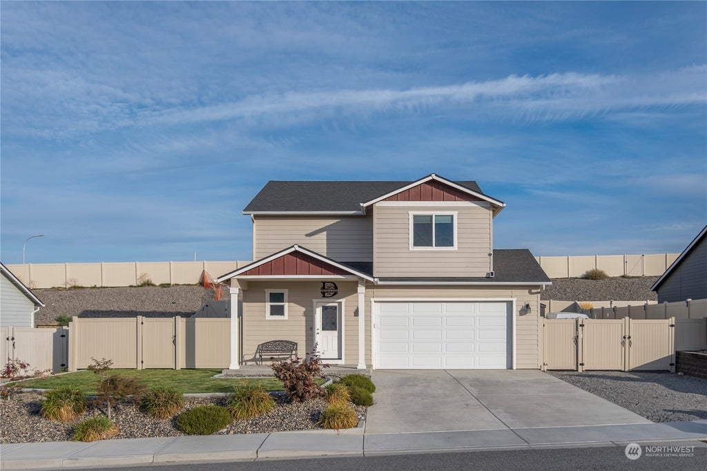 New fence is the finishing touch to this like-new 2018 home! Entryway leads to an open concept living area with electric fireplace adjacent to dining area and kitchen. Slider opens to large covered backyard patio perfect for entertaining. Kitchen features stainless steel appliances, quartz countertops and eating bar. Primary bedroom has attached bath and walk-in closet, two more bedrooms, bathroom, large landing area and laundry room all upstairs. Two car attached garage has mini-split air conditioner installed. Gutters, curbing, retaining wall and added graveled area provides plenty of additional off street parking. Fully fenced backyard, landscaping, irrigation & sprinkler system. Professionally pre-inspected.