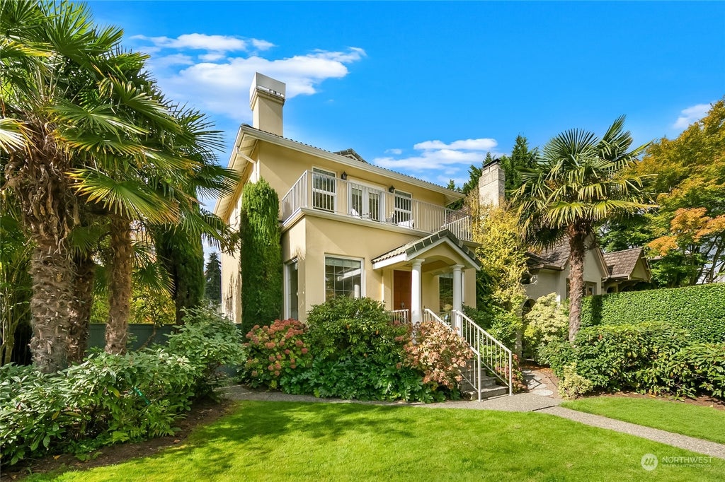 Meticulously conceived, crafted and cared for – a true-stucco Mediterranean with a nod to its bungalow beginnings! Open and light living & dining spaces, flowing seamlessly out to the sunny west facing deck for morning coffee or evening libations + an oversized lot for pets, gardening & play! Updated & super functional eat-in kitchen with custom finishes. Lavish primary; enjoy your evenings with fresh air streaming through French-doors leading out to your private balcony under the treed canopy of one of Madison Park’s finest streets (or use the A/C!). Crow’s nest office + many other spaces & places to fit your customization. Two detached garage/multi-use spaces. The list goes on and on…all just a hop-skip & jump from marvelous Madison Park.
