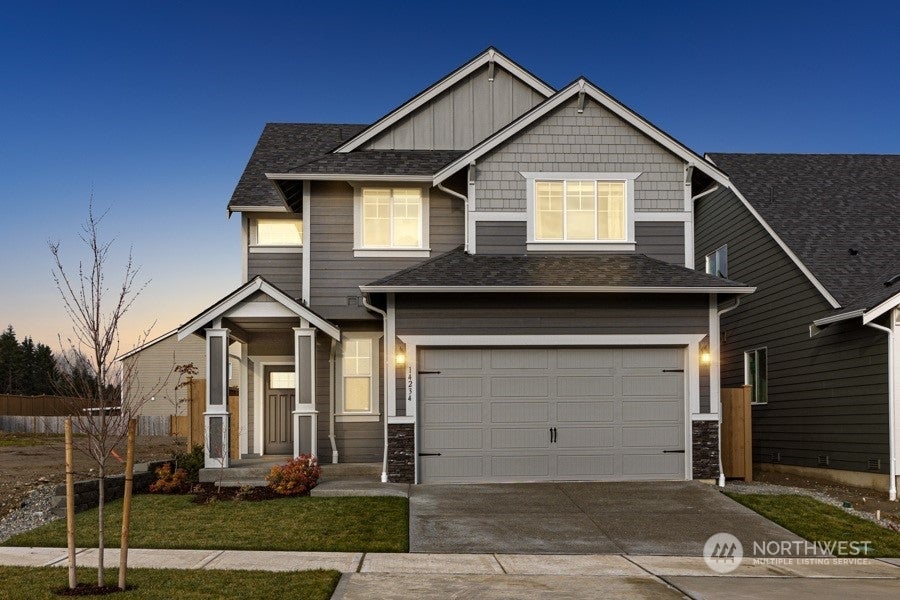 A spacious 2.5 story home with 3car garage (pic is of a 2car) is designed with a convenient first floor-den and open layout, spacious kitchen, Great Room with fireplace and dining area that leads to oversized covered back patio. Upstairs you will find four bedrooms, including the owner’s suite with spa-like bathroom and walk-in closet. The top floor bonus room with bath adds more share living space. This thoughtfully planned out Soundbuilt community is surrounded by beautiful woods, close to many shops and restaurants in downtown Yelm and only a short drive away from hiking/walking trails & schools & JBLM. Ask about our $18k your way options!