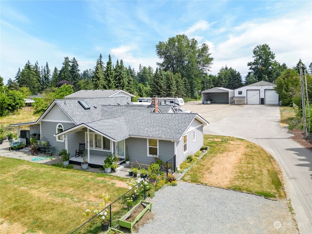 Multi-Generational Living Opportunity on 1.41 acres of land in Puyallup. Main House is 3bed/2bath rambler with tasteful updates, hardwood floors, and large fully fenced lawn. Detached double garage includes 2bed/1bath apartment on upper story offering secondary rental income potential or MIL option. X-Large 52x30 Detached shop offers two X-Tall roll up doors, vaulted ceilings, power and water, as well as fully finished upper Storage Space is 28'x12' and Office Space is 12'x12', with a lower storage area of 12'x40'. The detached 40'x40' metal carport offers additional storage, Plenty of room in front & behind shop for parking and storage solutions. This opportunity near downtown Puyallup offers rare acreage and residential/rental potential.