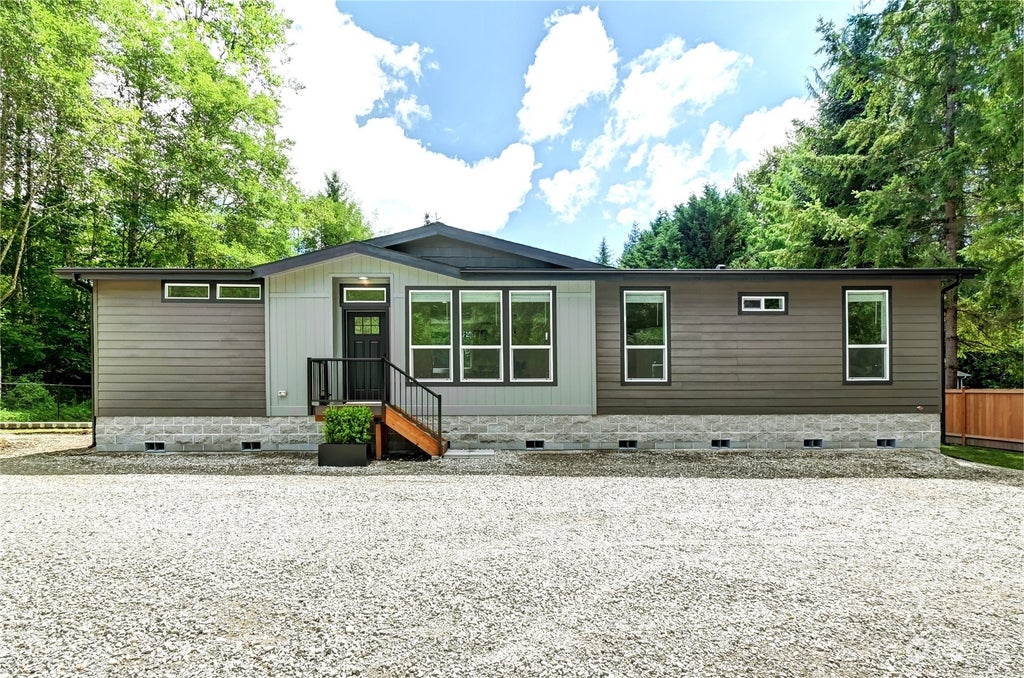 PILCHUCK CREEK WATERFRONT HOME w/optional carport shop permit ready: Loaded w/upgrades, situated on a stunning 1.5 acre Pilchuck Creek property. 3 bed, 2 bath home feat: open floorplan, 9ft ceilings, 2 large living areas, dining space, designer kitchen, & laundry/mud rm. Expansive windows throughout bring in light & beautiful property/creek views from all angles. The modern kitchen is loaded w/ designer finishes, upgraded appliances, full tile backsplash, & custom island. The spacious + light-filled primary suite includes walk in closet, large vanities + storage, modern freestanding soaking tub, & large shower. This tranquil park-like property has easy access to I-5 & Hwy 9, fenced + gated, RV parking w/ water-power hookup, & wired for EV.