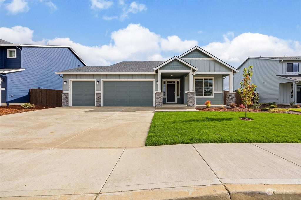Make the most out of single-level living in this 4-bed, 2-bath Baker floorplan w/ a 3-CAR GARAGE! Enjoy the open concept kitchen-dining-great room layout, perfect for entertaining. Custom alder cabinets, quartz countertops, luxury vinyl plank & LVT flooring, and a spacious lot. Owner's suite features soaking tub, shower, dual sinks & walk-in closet. Front landscape/sprinklers & large, covered patio. Heat Pump/A/C included, fiber-optic internet available, and 2-10 Home Warranty! On select homes, incentives are available for a limited time. Use of preferred lenders can trigger maximum incentives. Please contact agent.