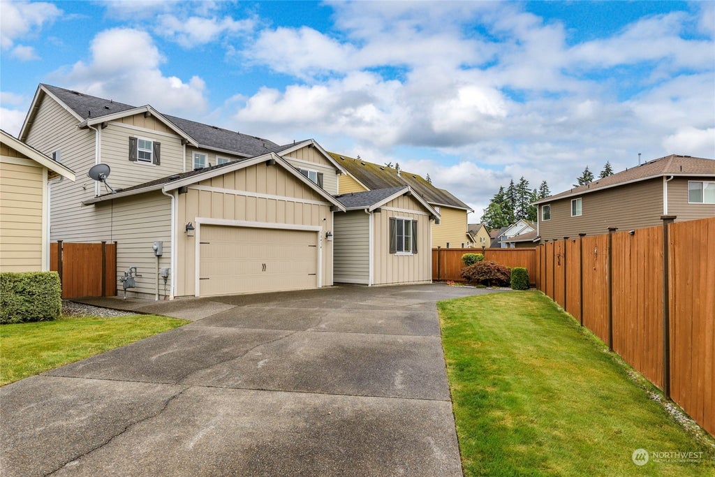 Welcome to this spacious residential home boasting 3,219 sq ft of living space ideal for comfortable living. This home boasts a mother-in-law unit with 1 bedrm, 1 bath, & kitchenette offering versatile living or rental income potential. The open main floor concept enhances the spacious feel, complemented by a huge kitchen island & walk-in pantry. This spacious home features a total of 4 bedrooms, 3.25 baths providing privacy. Huge bonus rm upstairs & office area. Primary w/5 pc bath & walk-in closet. Enjoy newly added covered deck overlooking a beautifully landscaped backyard perfect for outdoor gatherings. 3-car garage ensures plenty of parking & storage space. Park & playground. Close to schools, shopping, & JBLM military base.