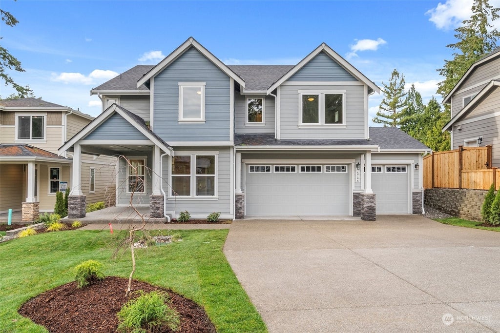 New Lacey 8 home community-Dusty Lane presents the Riviera Plan by local builder Rob Rice Homes featuring 4 bedrooms + den & bonus room. Kitchen highlights include quartz countertops with full tile splash, White maple shaker cabinets walk-in pantry and wine fridge. Hardwood floors in entry, kitchen, living, dining alongside white trim/millwork and modern finishes. The primary offers a spacious feel with full tile shower, quartz counters, tile flooring and slider to a deck. Quartz counters throughout plus tile floors in baths & laundry. Covered patio, fenced yard & fully landscaped. Solar panels, heat pump and electric hybrid hot water tank ensure energy efficiency. Visit this new community today!