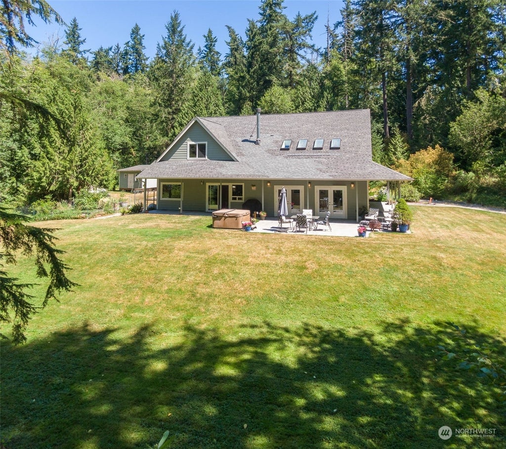 Enter through the winding drive to this spectacular 3,034 square ft. 3-bedroom, 3-bathroom home on 4.8 sun-drenched private acres. Built in 2006, this house has it all: large kitchen w/ eating area, walk-in pantry, living room with French doors, vaulted ceilings, a wood-burning stone fireplace, and home office. Enjoy easy living with the main floor Primary ensuite & 2 bedrooms upstairs, a large bonus/family room, a 2nd office or craft room, and an attached 2-car garage. Don't miss the covered wrap-around porch, large sun-drenched patio, garden area, and outbuilding w/ carport. Complete privacy, yet very close to town and ferries. It's an island dream property!