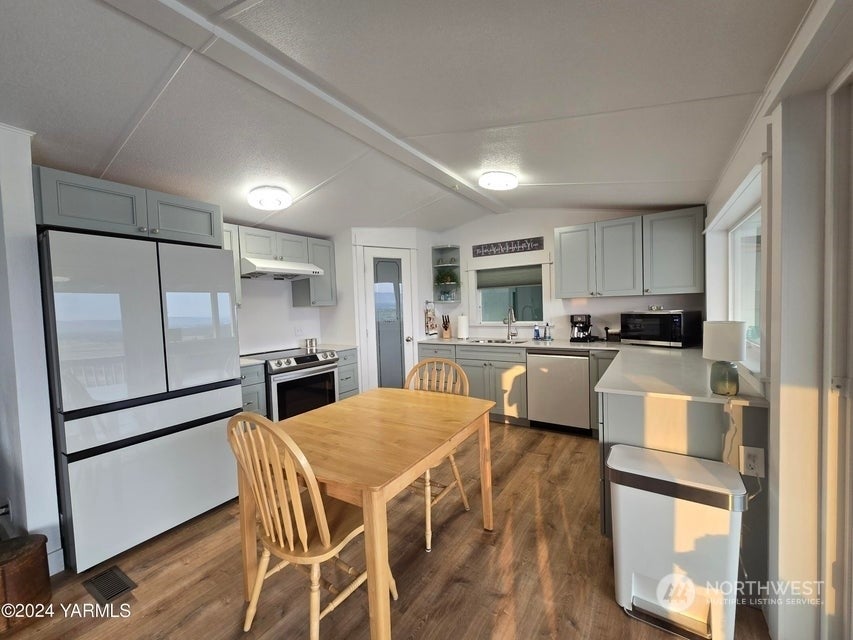 Located in the Alps manufactured home park on the south side of Moxee tucked right against the Hills. This is an immaculate fully remodeled two-bedroom one-bath home with a view to die for off of the back deck that will Amaze you, come and see this home in the Moxee area that is fully furnished with a washer and dryer. The fridge freezer built-in stove oven combination and dishwasher are all the elite settings of the Samsung line. Water, sewer, and garbage are included in the $550 lot rent. ' We have a Lender for this Home Please ask the Listing agent'
