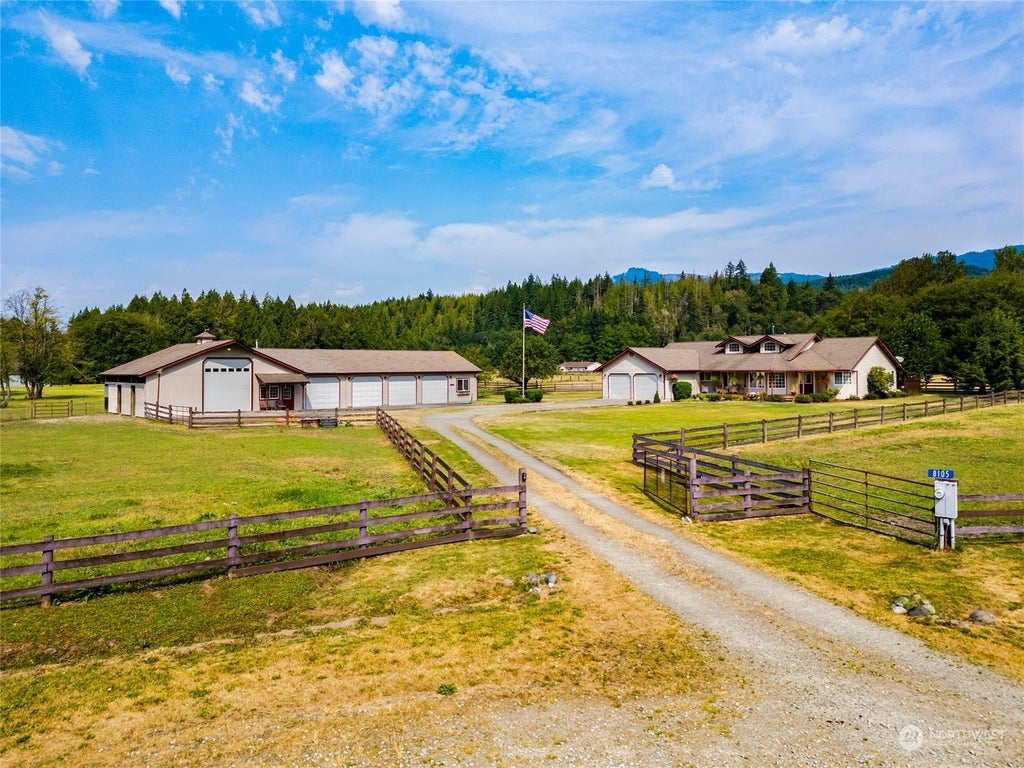 This custom-built 3-bedroom, 2-bath home is perfect for horses or car collectors alike offering stunning views and 5 flat usable acres. 48x30 shop/garage with five roll-up doors, and a 38x36 three-stall horse barn with cement floor, an office equipped with a wood stove, and small hayloft. This single-story house showcases intricate details: skylights, vaulted ceilings, arched doorways, freestanding wood stove, Heat Pump, hardwood, laminate flooring, ash cabinets, pantry and a large eat up kitchen island. The primary bedroom includes a gas fireplace, on suite bathroom with a jetted tub and 4-foot walk in shower. Large front and rear decks for relaxation and elk watching. The property is fully cross-fenced, and beautifully landscaped.