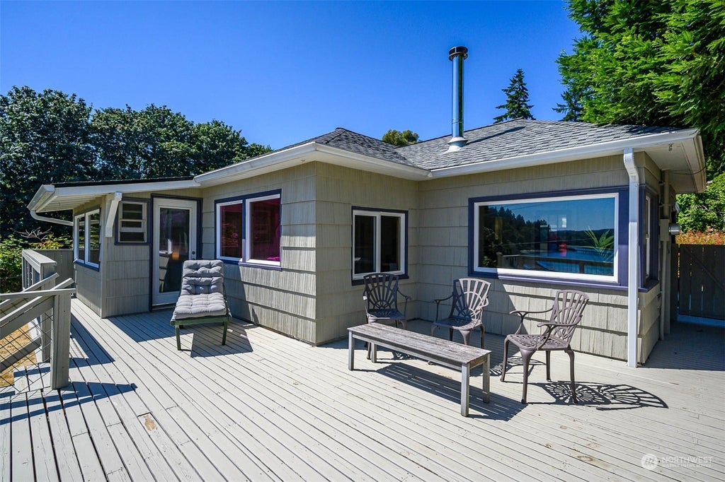Sweet updated 1940s Ellisport bungalow with views of Tramp Harbor! Located close to the bus line and just up the hill from KVI beach. This home combines vintage character with modern updates for comfort & peace of mind. Enjoy the mature landscaping as it is or expand on what is there and plant your dream garden in the sunny, level upper yard. Recent updates include a new septic system, roof, reinforced deck & stairs, upgraded kitchen with new appliances, new heat pump/mini-split throughout & refinished hardwood floors. In 2021 the exterior received a fresh coat of paint in 2021, a new carport roof & improved foundation drainage. Experience the perfect mix of historic charm & contemporary living in this beautifully maintained home!