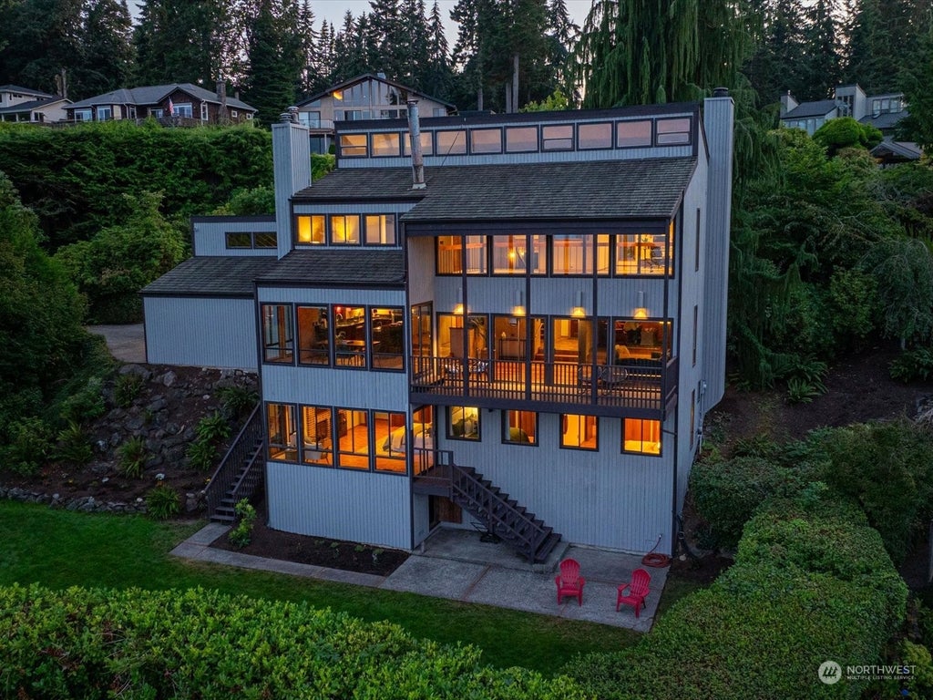 This Mid-Century Modern marvel home offers stunning views of Puget Sound, Ferries, the Cascade mountains, and the Seattle skyline. Nestled in the desirable Bill Point neighborhood with soaring vaulted ceilings, Brazilian Cherry flooring on the main level, and fresh paint both inside and out, several flexible rooms embodying the quintessential Pacific Northwest dream. With three spacious bedrooms and 2.5 baths, this home sits on a generous 0.43-acre lot, providing ample space for outdoor entertaining. Watch the ferries glide by during the day and glow at night. The community also boasts a pool, adding to the appeal of this fantastic neighborhood. Tons of storage! Short walk to lovely Pritchard Park.