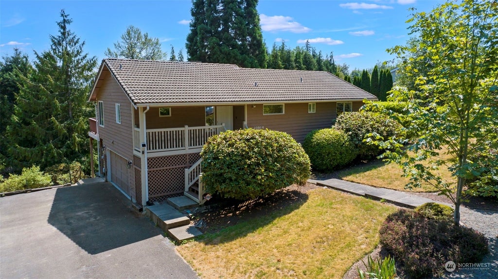 Hello Mt. Rainier! Set on a .34-acre corner lot with mature landscaping and fruit trees, this 3 bedroom, 2.75 bath home offers stunning mountain views. The brand new kitchen boasts a large island, quartz counters, new appliances, and a walk-in pantry. The open concept main living area extends to a large deck, ideal for entertaining. Upstairs features 2 bedrooms and 2 baths, while the downstairs has a 3rd bedroom, 3/4 bath, and a living room with a wet bar and patio access. Additional highlights include a spacious storage room, attached 2-car garage, and boat/RV parking. Enjoy privacy and convenience, just minutes from shopping and town!
