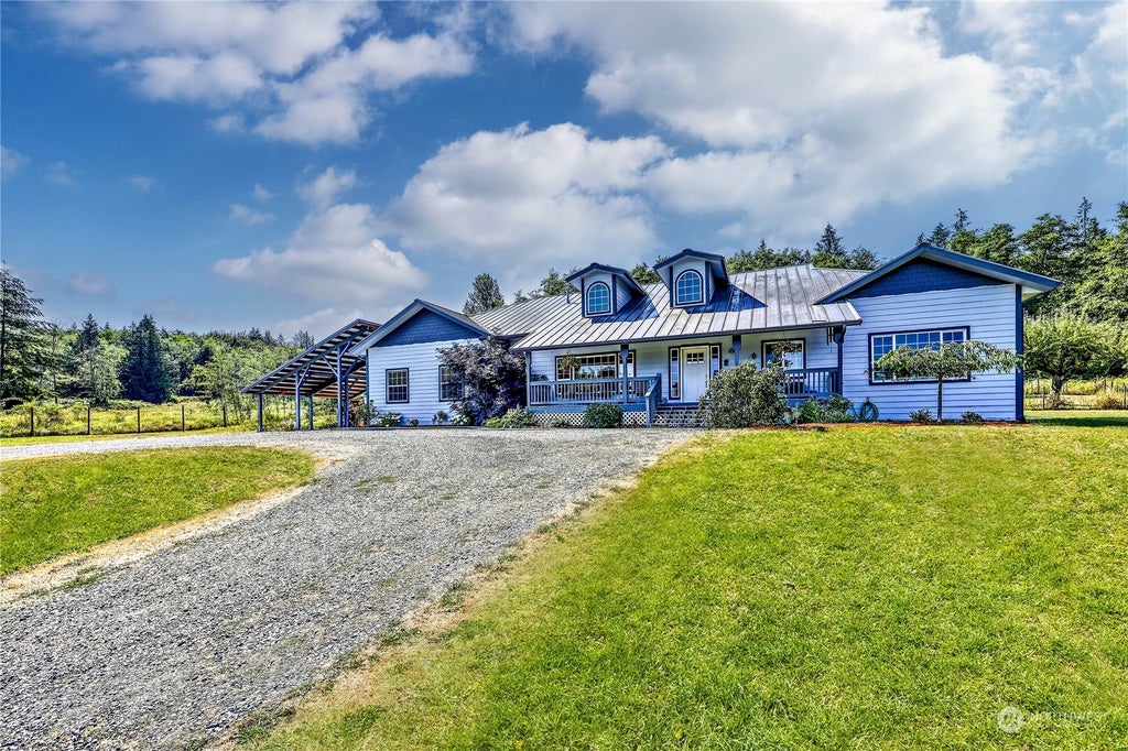 This Bright and Spacious ~ 3 bed/3 bath, single-story home sits on 5 sprawling acres in a gated community. Offering a gourmet kitchen with top of the line stainless appliances, GE Cafe French door oven, a column refrigerator & 2 column freezers, Jen air downdraft cooktop. Two generous primary bedrooms suites - one with roll in shower and convenient height toilet, a guest bedroom, guest bath, two offices (one currently being used as a bedroom), and a sewing/den. Deer fenced garden with 14 raised/irrigated beds, green house, potting shed, fruit trees. A 1920 SF, 4 bay w/carport heated RV garage w/bath and storage. Great horse property with two stall barn. Close to Sequim Bay State Park, Olympic Discovery Trail, John Wayne Marina.