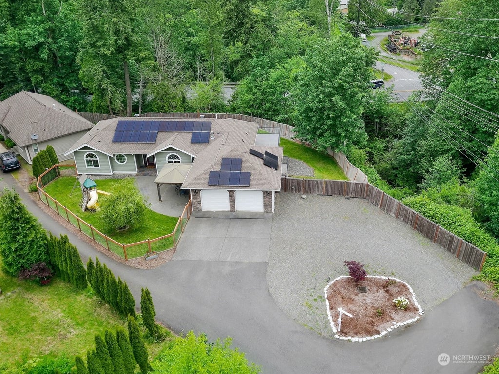Situated in the heart of Bellingham, this custom-built home offers an exceptional blend of comfort and style! The open floor plan features a stunning kitchen and dining area, complemented by newly re-finished Brazilian Tigerwood floors. The main floor primary suite is a private retreat, complete with a cozy fireplace, spacious bathroom, and luxurious soaker tub. The expansive daylight basement includes 3 large bedrooms, 2 full bathrooms, a family room, ample storage, and an impressive home theater. Both the front and back yards are fully fenced. Entertain on the wrap around deck or the front patio complete with gazebo. Enjoy minimal electrical costs thanks to the solar system! There's even extra space to park an RV or boat. A must see home!