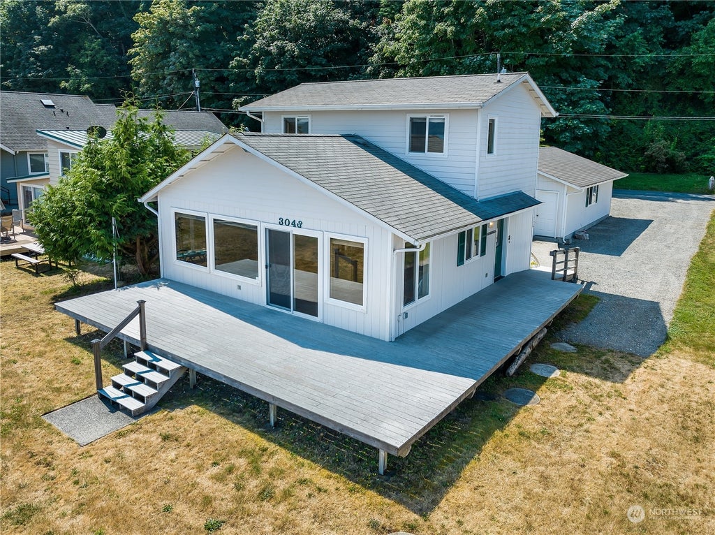 From the top of the hill to the tideland, where your private mooring buoy awaits arrival by boat. This .47-acre gem is a complete outdoor lover’s paradise. There is space for your RV and gear galore, on this large parcel that boasts and expansive driftwood beach and a double car garage, shop or art studio ready. The 1997 home was built for simplicity and includes a main floor bedroom with two suites upstairs, two baths and an open floorplan with solid wood floors. Plenty of on site parking on this no ferry island. Ideal as a weekend retreat, full-time home, or high demand vacation rental. Don’t miss your chance to own a slice of coastal paradise! Coastal living at its finest.