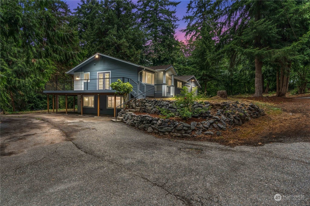 This meticulously remodeled project took 2.5 years to take down to the studs with full permits. This home is better then new! The bathrooms have been painstakingly perfected for each bedroom to have a private bath along with a half bath for guests downstairs. The deck was designed with access in mind, garage access along with from the front yard. Beautifully redesigned kitchen is ready to welcome the new owners. Walk in closet and ensuite make this primary with total privacy a dream. Sale includes two tax parcels totaling .75 acres with the opportunity to do with that extra parcel something exciting! Giant shop has a carport and 4 car capacity, with RV doors, and is separately metered.