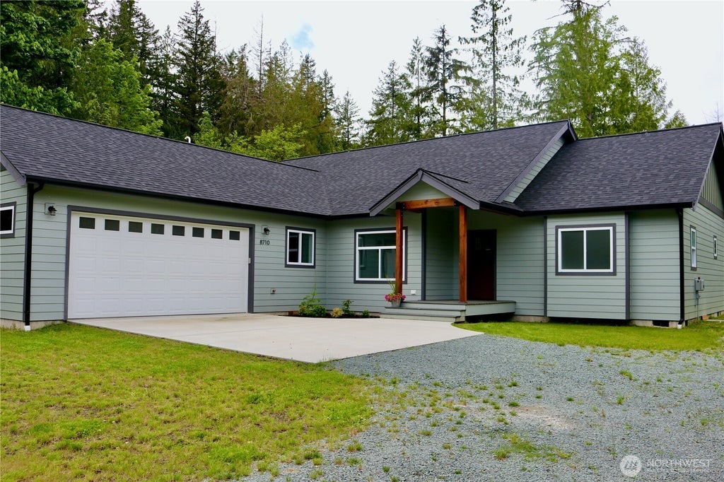 Beautiful, Brand New Construction Rambler located on a 1 acre level lot. Spacious 3 bedroom, 2 bath w/ office/den, oversized 2 car attached garage. Prime bathroom boasts a custom tile walk-in shower, soaker tub & big walk-in closet. Open floor plan w/ gas fireplace, live-edge bar-top in the kitchen, large pantry & immense cabinet storage. Covered front entry/deck, covered back deck and open concrete patio for year around entertaining. Tankless water heater w/ on-demand. Heat pump/AC unit making this an incredibly efficient home. Property has plenty of room for an additional shop for recreational vehicles/storage/you name it! Gated entrance at the beginning of the lane for added security.
