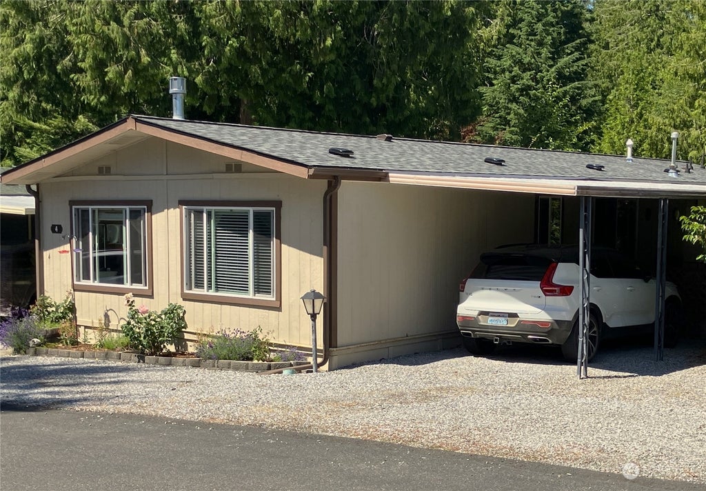 Nothing to be done in this move-in ready unit except to simply enjoy! Owner has made multiple updates, such as new roof, new insulation, modern remodeled bath off primary bedroom, washer and dishwasher, newer water heater, plumbed natural gas stove in living room to keep you toasty warm in winter. Plenty of sunny gardening space, nestled along a natural backyard creek. Giant covered deck. Separate dining, kitchen, spacious living room. Cedar Grove is a 55+ community in high demand for many reasons; it is convenient to all amenities including downtown, shopping, restaurants and a short walk to beautiful Lake Padden. A rare find!