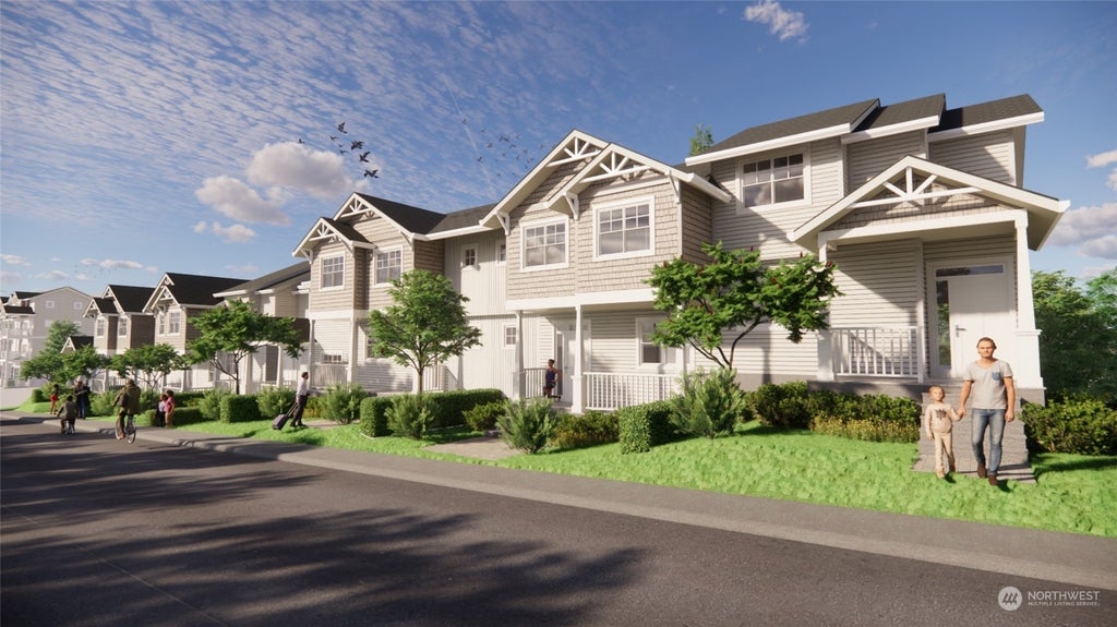 Introducing the MeadowView Plus townhome, a 1500+ SF home with 3 beds/2.5 baths, and oversized 2 car garage. The upper level features two bedrooms with a full bath and laundry w/full size W/D. The main level includes powder room, entry, kitchen, dining and living rooms, and an oversized covered deck. Each townhome includes solid wood kitchen cabinets w/soft close hardware, a fire suppression system, and three solar panels (upgrade to 6 more). The 10+ acre nature preserve provides a permanently protected view and a unique and tranquil living experience. Walking distance from Barkley Village and a nature trail outside your back door connects to Bellingham's vast trail network.